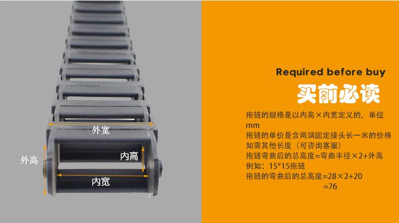 15系列塑料拖鏈規格表